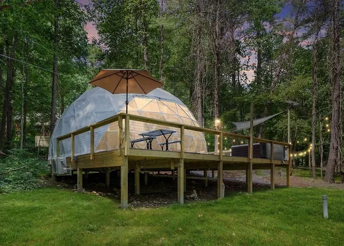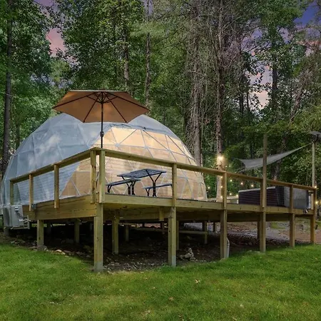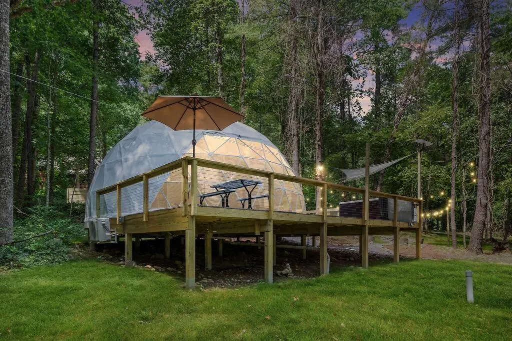 Cette villa Dream Dome - Romantic Getaway, Hot Tub, Ac, Wifi, National Park 8 Min offre une vue sur le jardin. Le logement comprend une salle de bains avec une toilette séparée et une douche. Les salles de bains sont également équipées d'un sèche-cheveux et des serviettes pour votre confort.